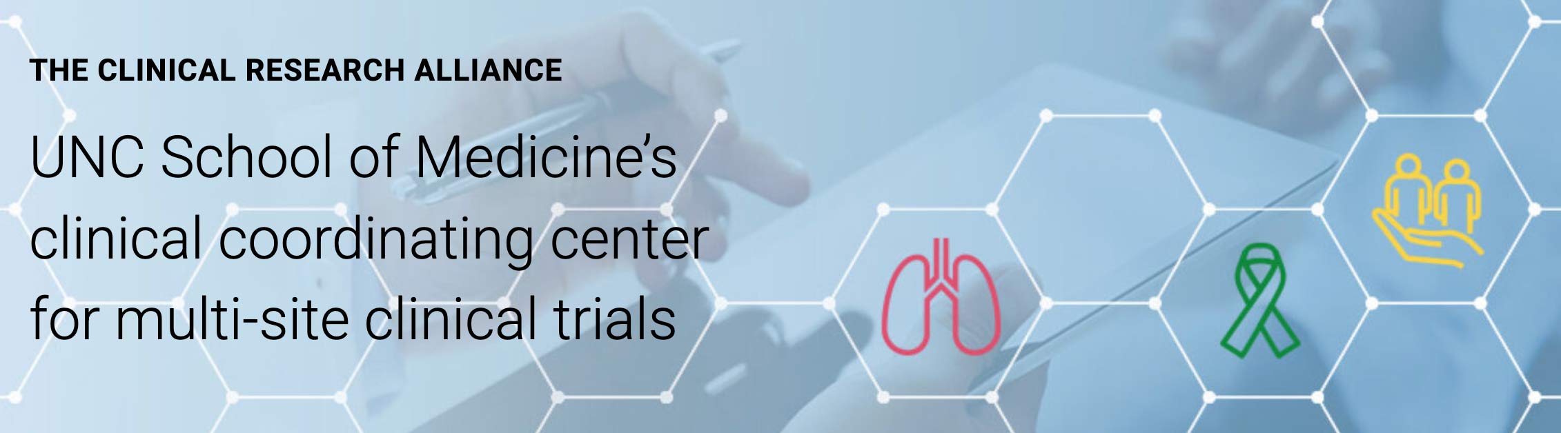 The UNC School of Medicine Clinical Research Alliance (CRA) partners with UNC investigators, government agencies, industry partners, and foundations to serve as UNC School of Medicine's hub for leading and coordinating multi-site clinical trial research.